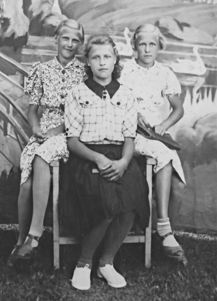Eturivissä vasemmalta: Martta ja Hilda Ojanen. Takana Iivari Ojanen.
