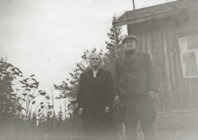 Hilda ja Iivari Ojanen vappuna 1959 Korpelan pihamaalla