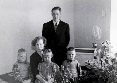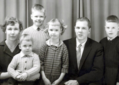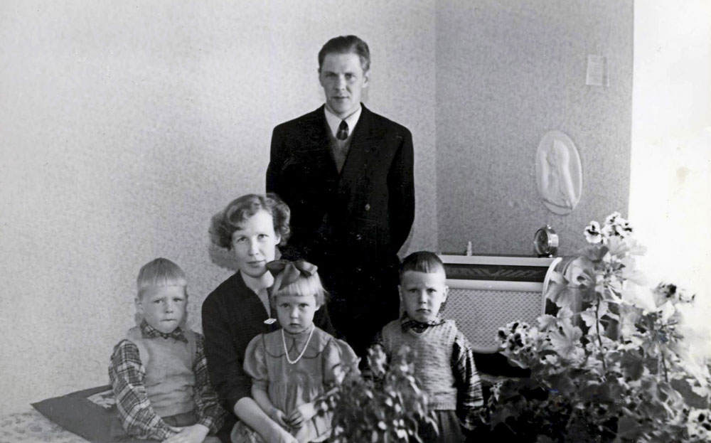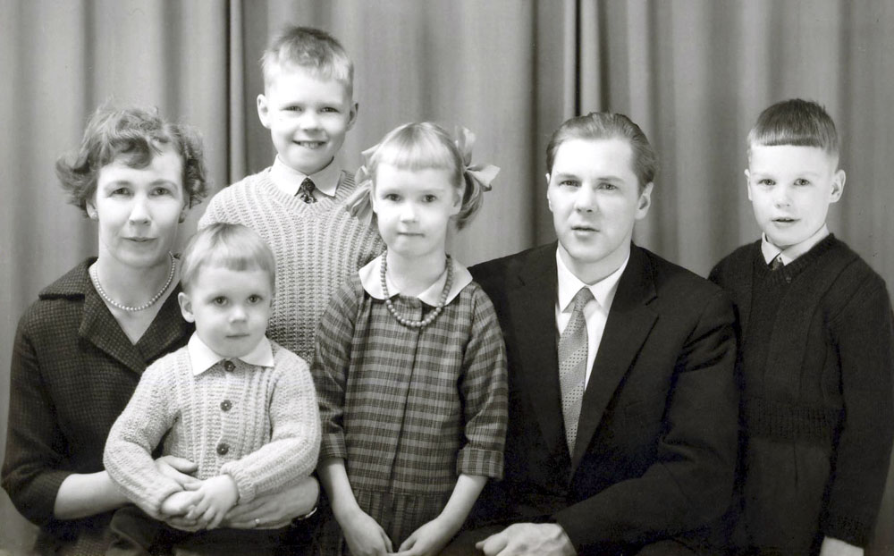 Kirsti, Ari, Arto, Arja, Mauno ja Arsi Ojanen Karviassa 1960